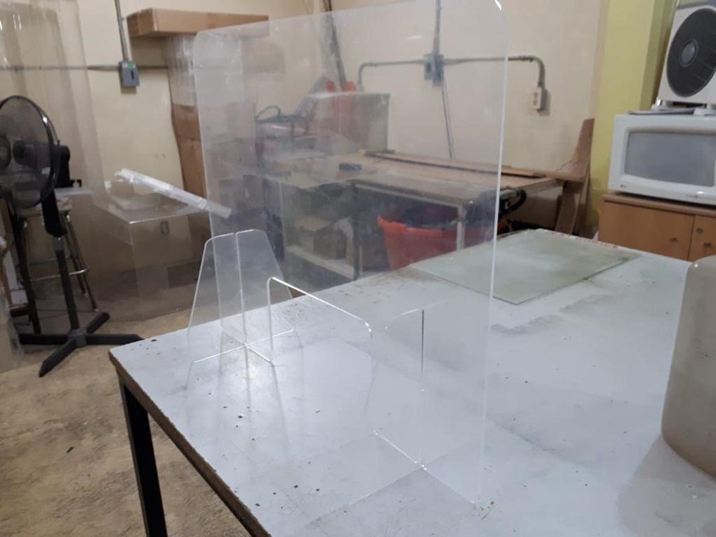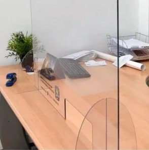 También contamos con mamparas para tu negocio o tu escritorio. Estás se trabajan bajo diseño. Dejamos algunas imágenes de ejemplo.
